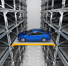 垂直升降類車庫又名塔式立體停車庫 , 在垂直方向依靠提升機升降而在水平方向上依賴于升降機上